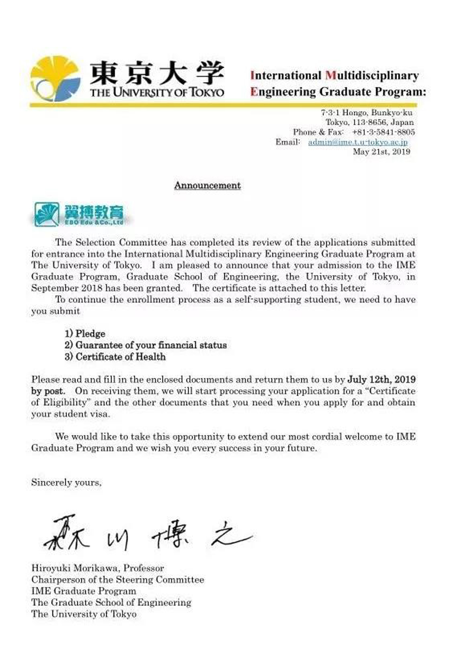 東京大學(xué)工學(xué)院修士課程(IME材料免試錄取,MEXT獎(jiǎng)學(xué)金獲得者);